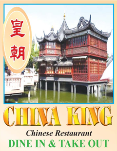 Cash Or Pay over phone using Credit Card Take Out Delivery China King Chinese Restaurant is open year round to serve you award-winning Cantonese Szechuan and Mandarin cuisine. Order online for delivery or takeout. Im not sure what to make of the menu board.